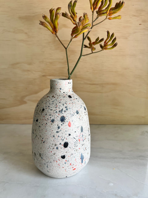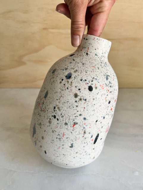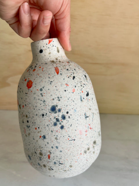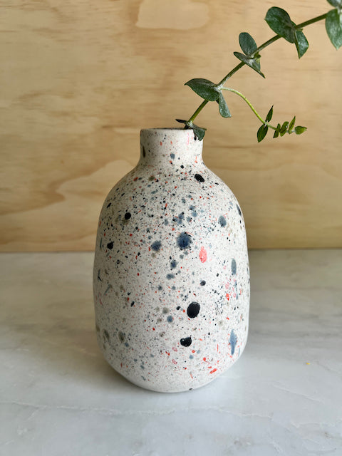 Approx: 7.5”h x 5”diam (opening 2”diam)