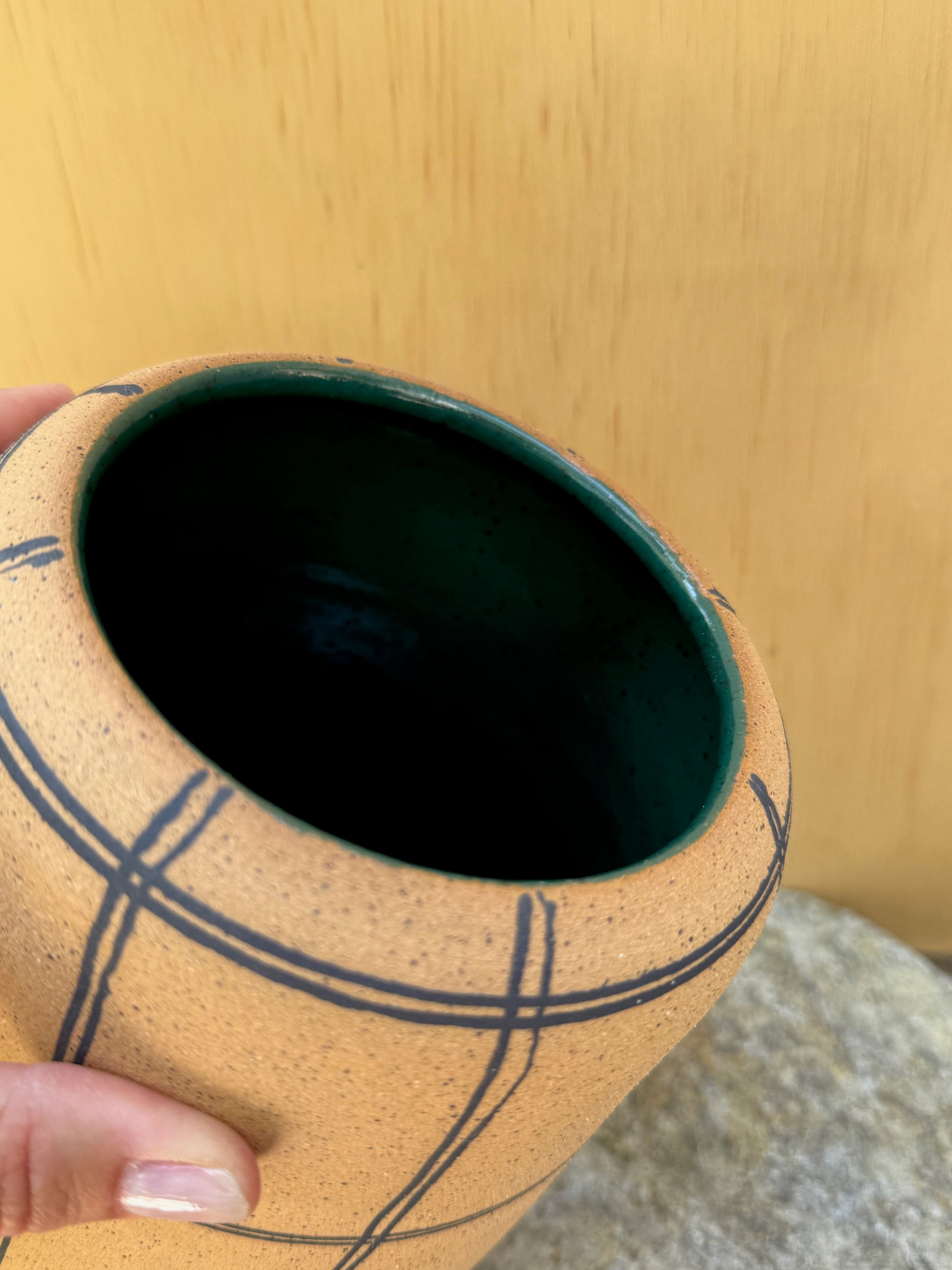 Hand crafted and hand-drawn exterior design with a glazed forest green interior
